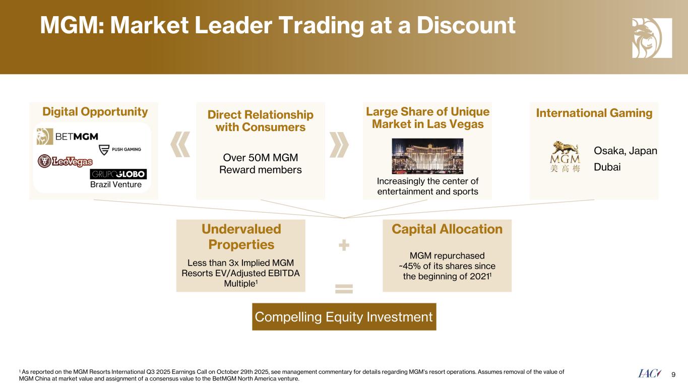 •In Q4 2025, IAC purchased an additional 1.0 million shares of MGM for an aggregate of $40 million and now holds 65.8 million shares of MGM.