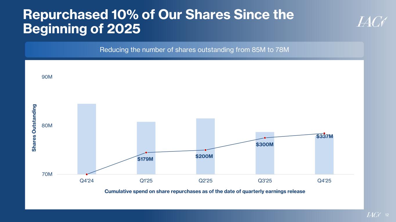 •IAC returned capital in Q4 through 1.0 million share repurchases for $37 million since Q3 2025 earnings